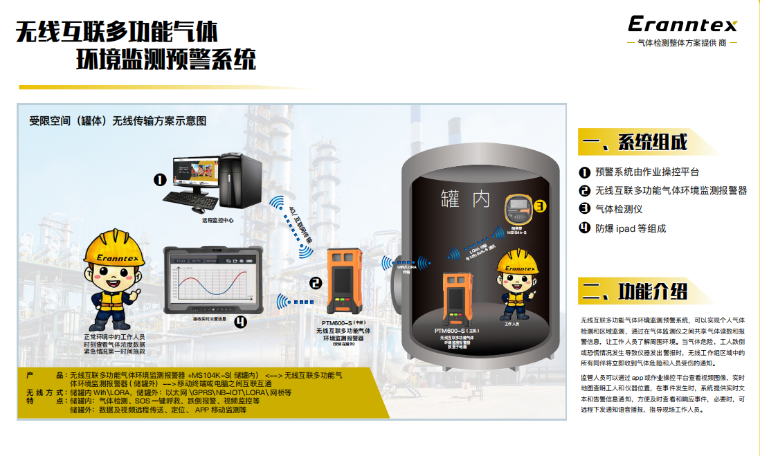近年來,我國在受限空間作業(yè)時,發(fā)生的中毒、窒息、燃燒、爆炸、坍塌、觸電、淹溺事故較多,國家應(yīng)急部非常重視安全生產(chǎn),現(xiàn)在都全面規(guī)范生產(chǎn),提高高風(fēng)險作業(yè),包括油罐清罐、受限空間等作業(yè)的監(jiān)管,降低安全事故。逸云天的無線互聯(lián)受限空間監(jiān)測氣體預(yù)警系統(tǒng)技術(shù)方案、線互聯(lián)受限空間監(jiān)測氣體預(yù)警系統(tǒng)技術(shù)方案,將攝像頭架設(shè)在受限空間,工人佩戴一臺逸云天便攜式檢測儀進行作業(yè),隨時檢測所處環(huán)境的氣體濃度狀況,外邊監(jiān)護人員可通過手機或ipad進行查看監(jiān)測數(shù)據(jù)和視頻圖像,實現(xiàn)遠(yuǎn)程高風(fēng)險操作一體化監(jiān)管,徹底解決行業(yè)痛點。