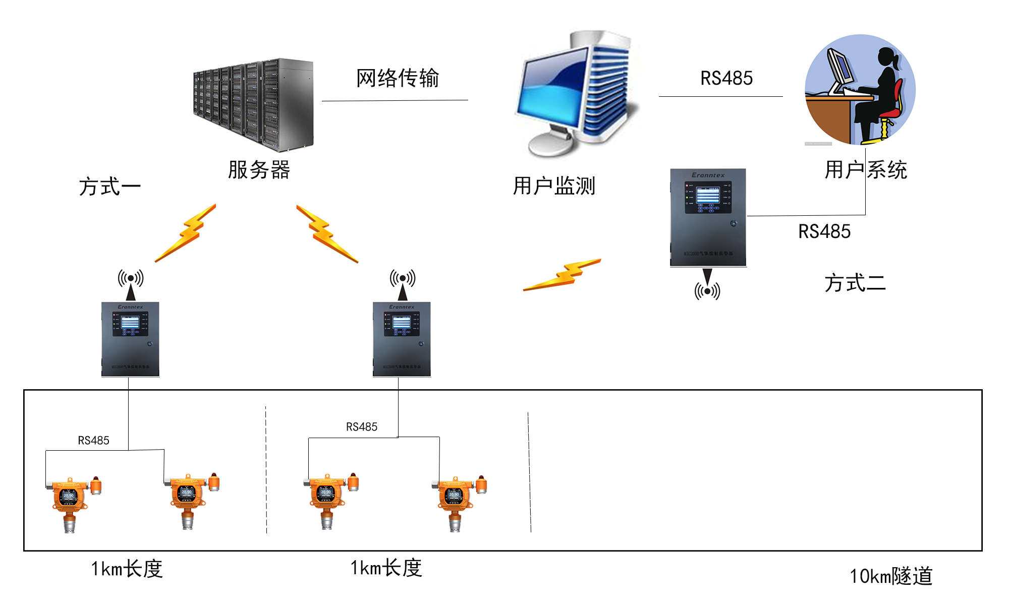 我公司國(guó)內(nèi)首創(chuàng)在線復(fù)合式氣體檢測(cè)儀,可通過(guò)一臺(tái)儀器同時(shí)檢測(cè)CH4,CO,O2,H2S,CO2,溫濕度等,并可兼容有線和無(wú)線傳輸方式。